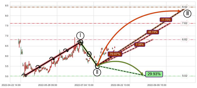 ♘ 支撑价格位5.58,可信任强度97.39%,距离最后交易2022-08-12 14:00形成的收盘价格6.43相差 -13.16%