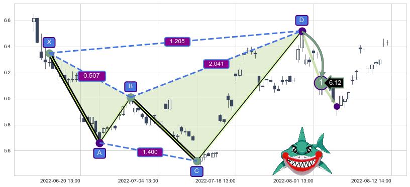 ➣ 已完成【鲨鱼】形态起点X: 06-16:11, 终点D: 07-28:14, 共66交易小时