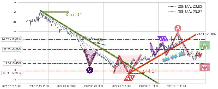 ♞ 20小时均线:20.63,30小时均线:20.87→ 快线<慢线