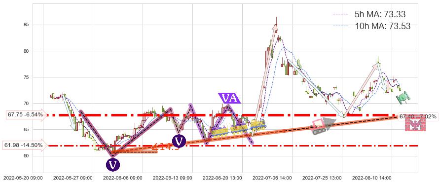 ♘ 支撑价格位67.75,可信任强度96.98%,距离最后交易2022-08-12 14:00形成的收盘价格72.49相差 -6.54%