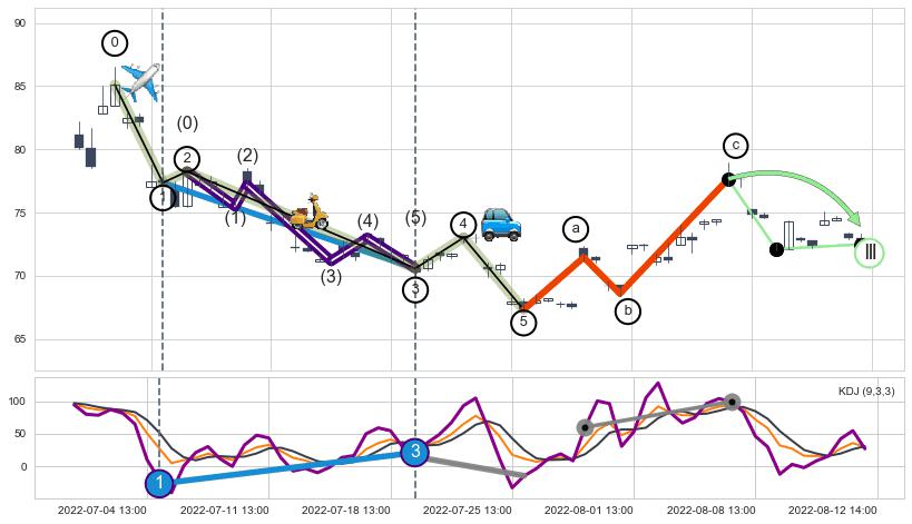 ➣ a,c调整浪MACD, RSI, KDJ走势都【未出现】背离,abc走势延续, 5浪反转概率增强