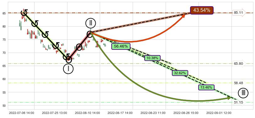 ➢ 循环浪继续向下【最高】位置(08-23:15, 65.80),匹配聚类样本比例18.38%, 可能性概率10.38%
