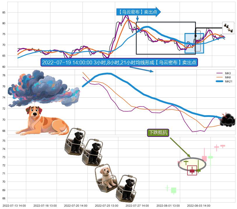 从2022-07-25 14:00至2022-08-05 13:00,共包含18个小时,阶段股价上涨14.80%,阶段股价变动位移路程比: 1 : 2.0