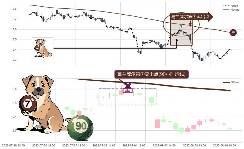 ⚁ 90小时均线 第⑦卖出点 属于 均线服从 信号,属于趋势运行的【常态】即信号期望为下降趋势的中继
