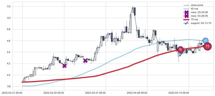 上涨趋势03-21 09:00-04-15 11:00,均线75确认关键支撑1处
