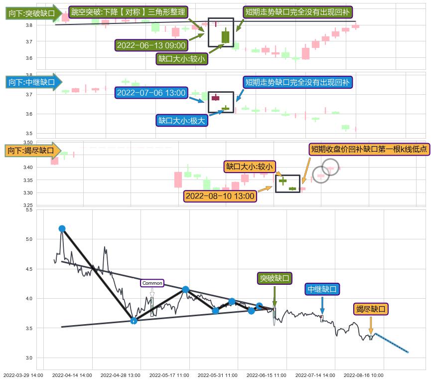 ➢ 2022-08-10 13:00形成:向下跳空【竭尽】缺口