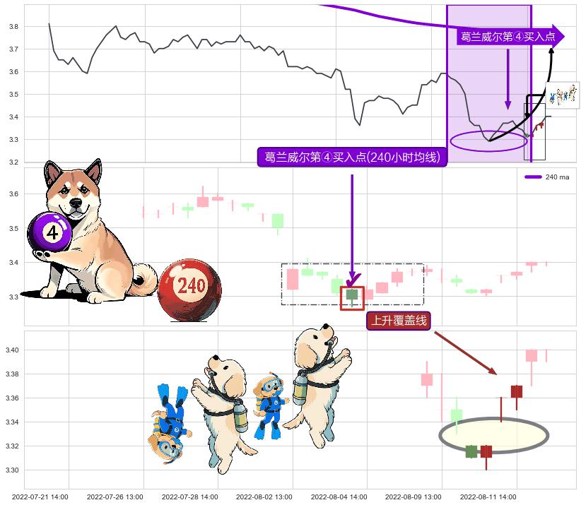 ➣ 收盘价(08-11:14: 3.370 )→回踩→第一根k线低点(08-09:14: 3.330 )