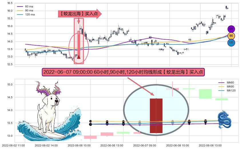 ⚀ 2022-06-07 09:00:00小时显现 60小时-90小时-120小时均线 【蛟龙出海】买入点 看多信号,后市看涨,买入
