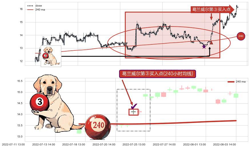 ⚀ 2022-07-22 13:00:00-小时显现 葛兰威尔均线 240小时均线 第③买入点 上升趋势的中继信号,后市看涨,买进信号