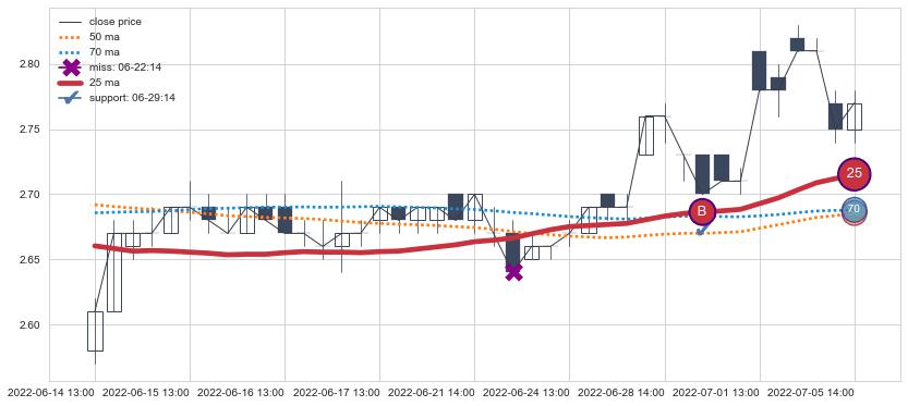 上涨趋势06-14 13:00-07-05 14:00,均线25确认关键支撑1处