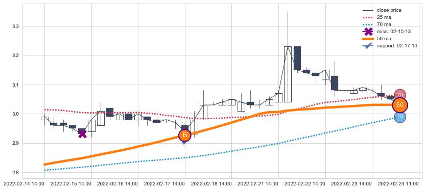 上涨趋势02-14 14:00-02-24 11:00,均线50确认关键支撑1处