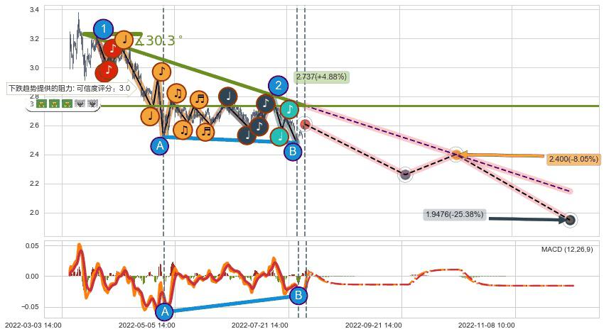 ➣ 预测:2022-10-14 13:00,【试探阻力】稳定目前下跌趋势的前提下,预测价格:2.400