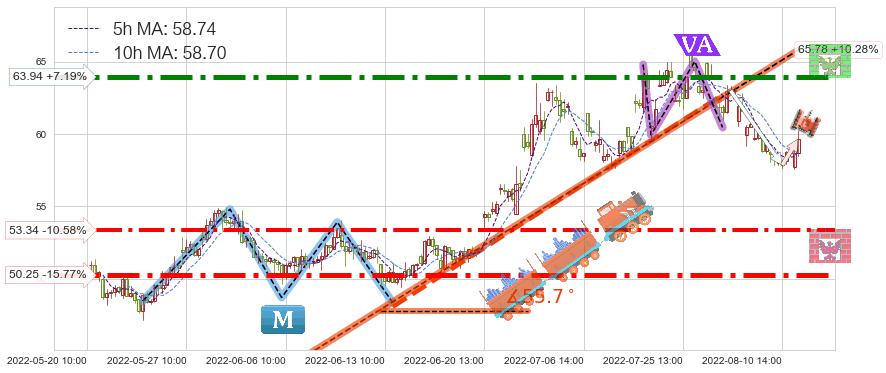 ♘ 阻力价格位63.94,可信任强度92.93%,距离最后交易2022-08-12 14:00形成的收盘价格59.65相差 +7.19%
