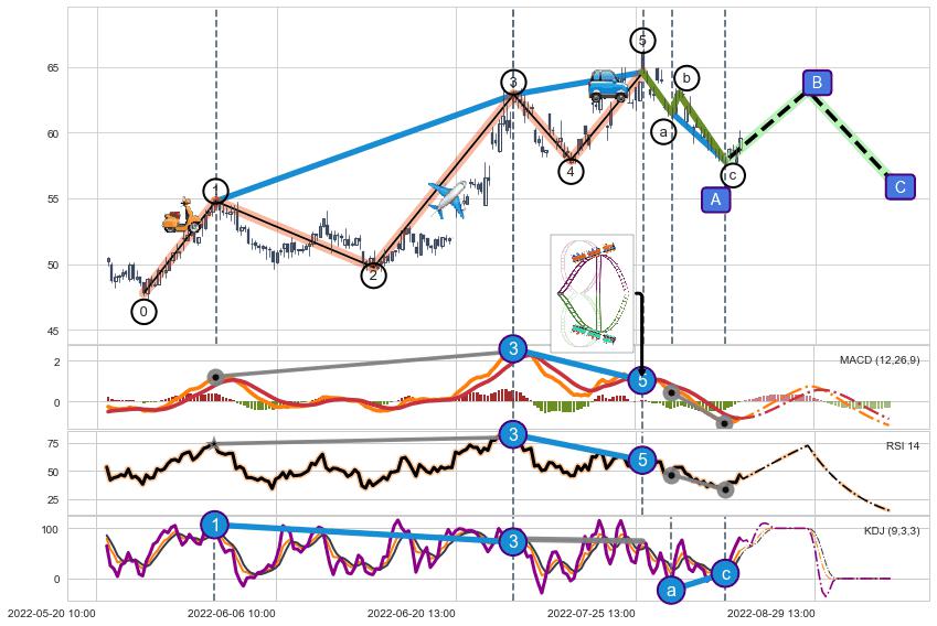 ➢ 1,3,5驱动浪MACD, RSI, KDJ走势都出现【常规背离】反转信号增强