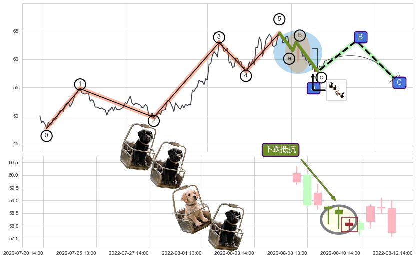 | 5 🅚:吊颈线(上吊线) ➕ 🌊:波浪理论猜想上涨浪5已形成,猜想后续形成回调abc下跌(均值回复) ☞ 看空信号 ⇥ 【🅚线】交织【图形】⇥ 综合量化分数: 47 | > |