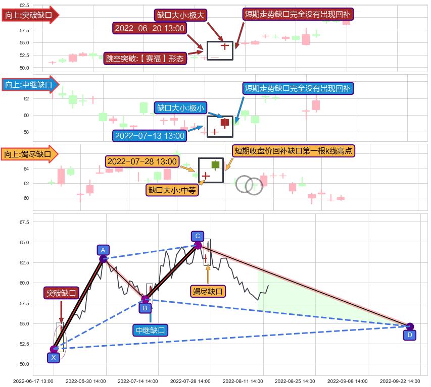 ➢ 2022-07-28 13:00形成:向上跳空【竭尽】缺口
