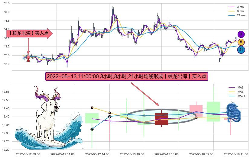 ⚀ 2022-05-13 11:00:00小时显现 3小时-8小时-21小时均线 【蛟龙出海】买入点 看多信号,后市看涨,买入