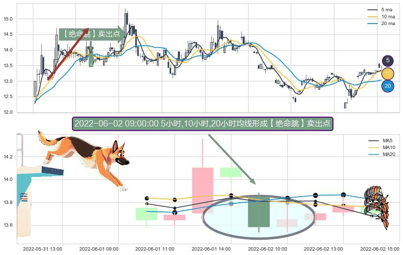 ⚀ 2022-06-02 09:00:00小时显现 5小时-10小时-20小时均线 【绝命跳】卖出点 看空信号,后市看跌,卖出