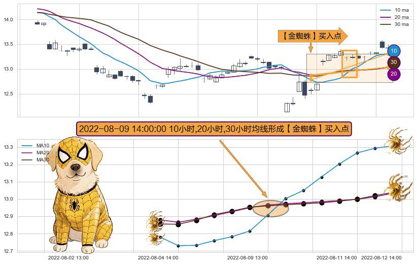 ⚀ 2022-08-09 14:00:00小时显现 10小时-20小时-30小时均线 【金蜘蛛】买入点 看多信号,后市看涨,买入