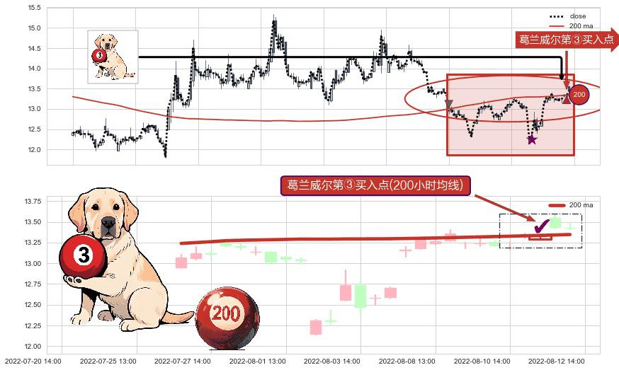 ⚀ 2022-08-11 14:00:00-小时显现 葛兰威尔均线 200小时均线 第③买入点 上升趋势的中继信号,后市看涨,买进信号