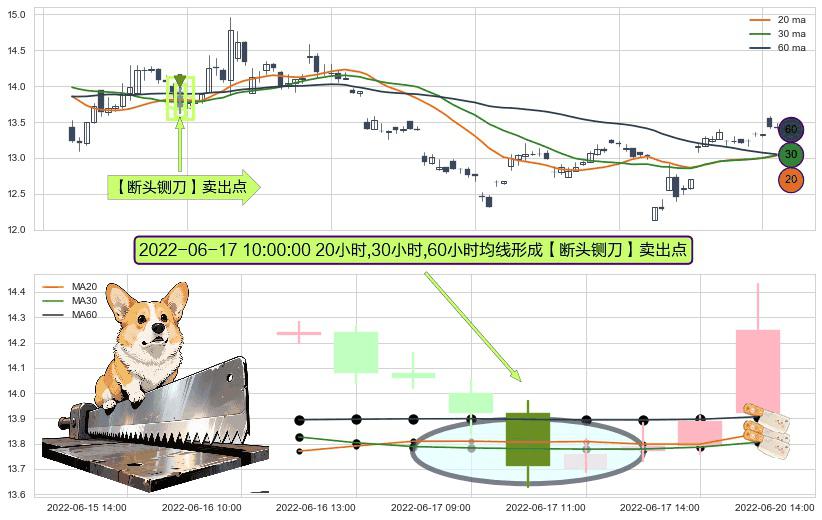 ⚀ 2022-06-17 10:00:00小时显现 20小时-30小时-60小时均线 【断头铡刀】卖出点 看空信号,后市看跌,卖出