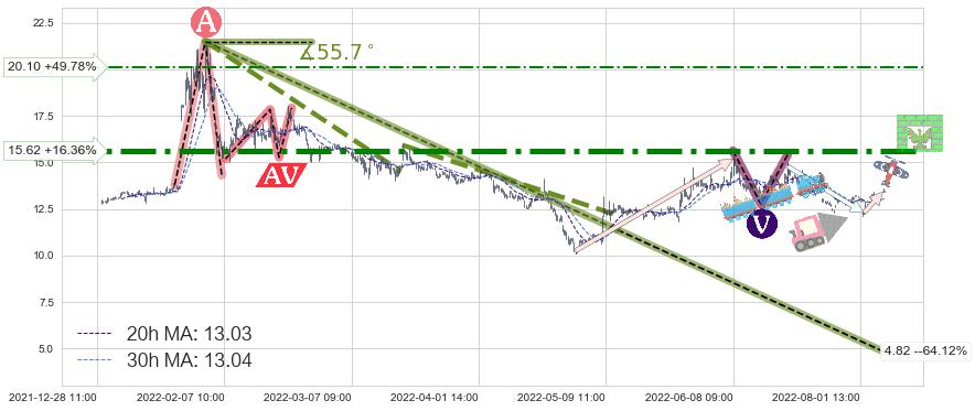 ♘ 阻力价格位20.10,可信任强度54.03%,距离最后交易2022-08-12 14:00形成的收盘价格13.42相差 +49.78%