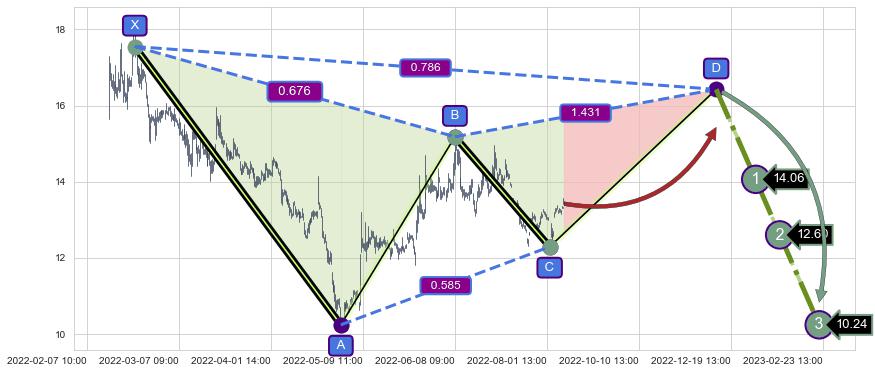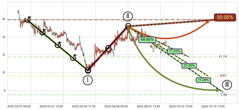 ➣ D点拟合预测价格16.42,距离最后交易收盘价格13.42相差 +22.39%