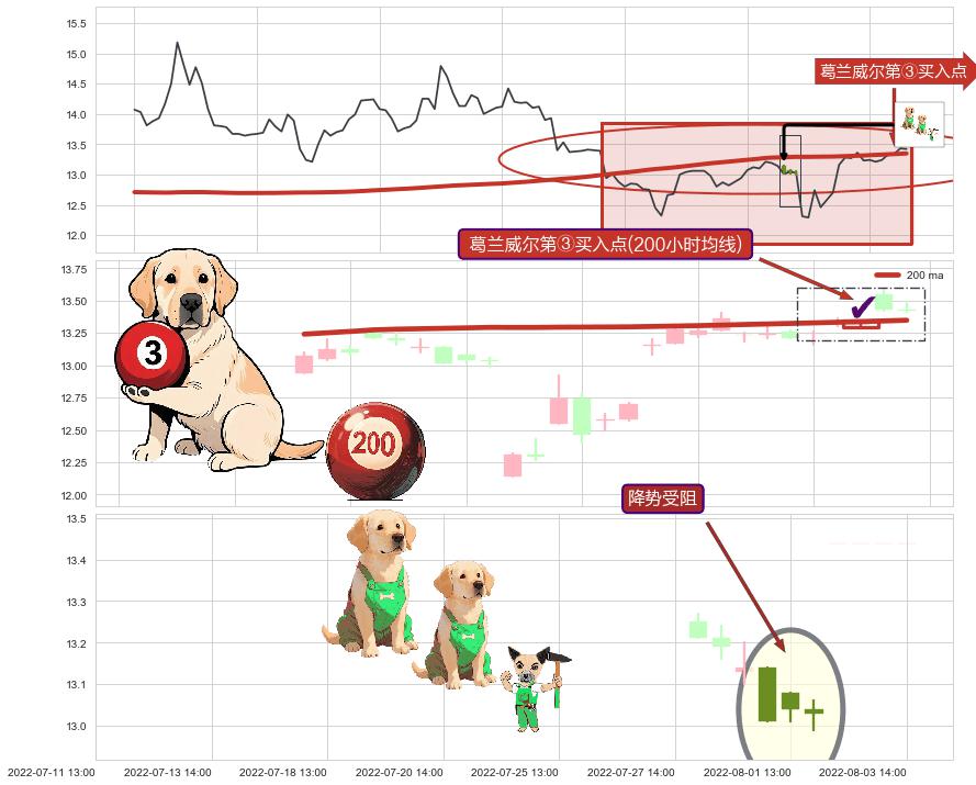 ➢ 收盘价(08-02:14: 12.29 )→再次回踩→第一根k线高点(07-27:14: 13.15 )