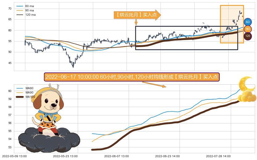 ⚀ 2022-05-26 11:00:00小时-2022-08-08 13:00:00小时显现 60小时-90小时-120小时均线 【烘云托月】买入点 看多信号,后市看涨,买入