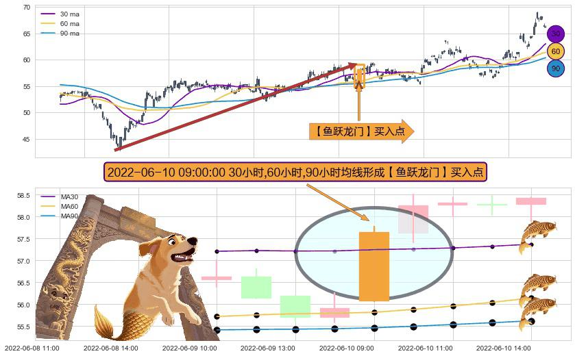 ⚀ 2022-06-10 09:00:00小时显现 30小时-60小时-90小时均线 【鱼跃龙门】买入点 看多信号,后市看涨,买入
