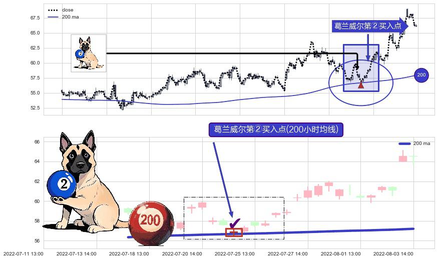 ⚀ 2022-07-22 13:00:00-小时显现 葛兰威尔均线 200小时均线 第②买入点 上升趋势的中继信号,后市看涨,买进信号