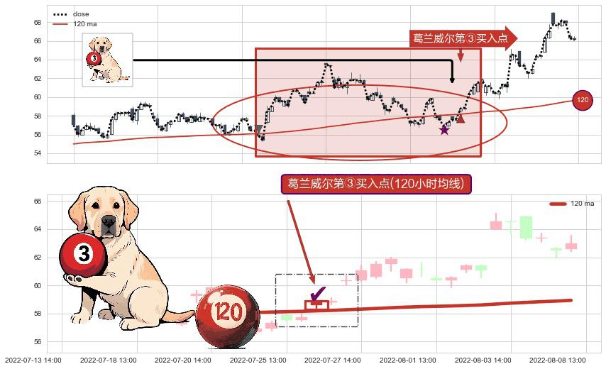 ⚀ 2022-07-26 13:00:00-小时显现 葛兰威尔均线 120小时均线 第③买入点 上升趋势的中继信号,后市看涨,买进信号