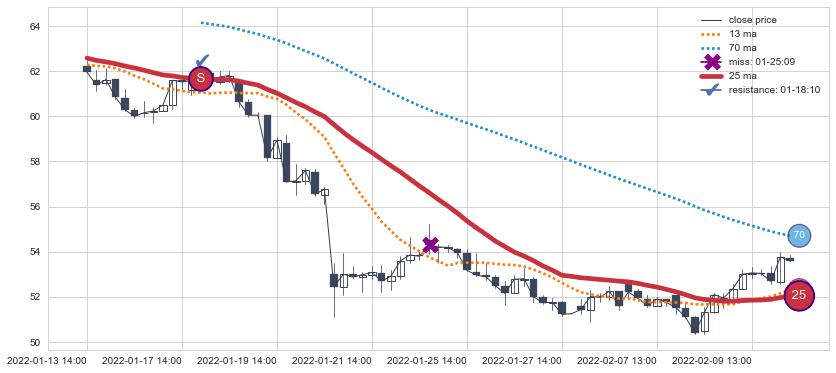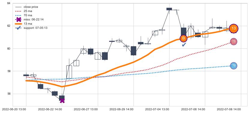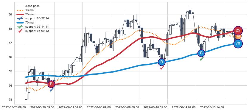 ⚂ 2022-06-22 13:00:00-小时均线向下破位,2022-07-26 13:00:00-小时重新上穿突破均线,均线支撑再次生效