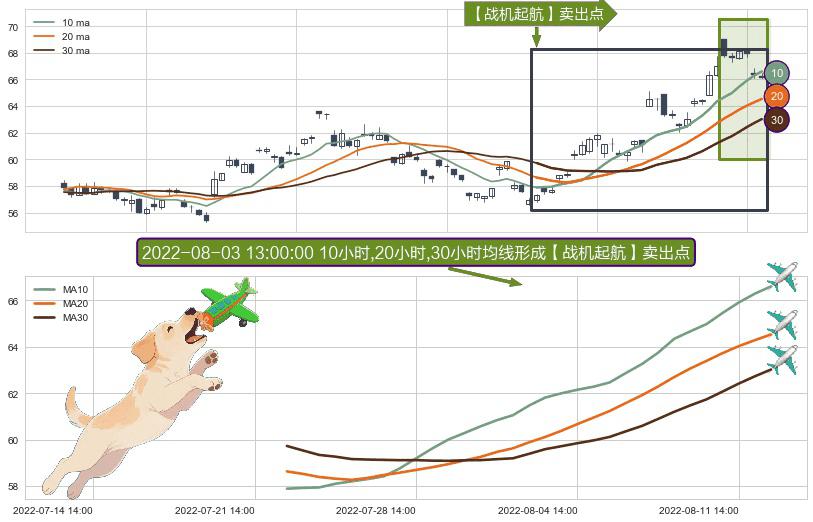 ⚀ 2022-07-22 14:00:00小时-2022-08-12 14:00:00小时显现 10小时-20小时-30小时均线 【战机起航】卖出点 看空信号,后市看跌,卖出
