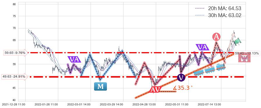 ♞ 20小时均线:64.53,30小时均线:63.02→ 快线>慢线