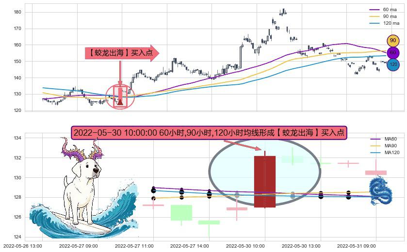 形态多维评估: ⚀ 2022-05-30 10:00:00小时显现 60小时-90小时-120小时均线 【蛟龙出海】买入点 看多信号,后市看涨,买入