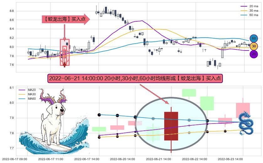 ⚀ 2022-06-21 14:00:00小时显现 20小时-30小时-60小时均线 【蛟龙出海】买入点 看多信号,后市看涨,买入