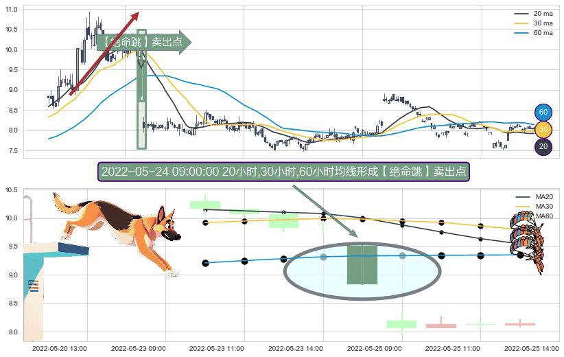 ⚀ 2022-05-24 09:00:00小时显现 20小时-30小时-60小时均线 【绝命跳】卖出点 看空信号,后市看跌,卖出