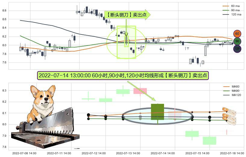⚀ 2022-07-14 13:00:00小时显现 60小时-90小时-120小时均线 【断头铡刀】卖出点 看空信号,后市看跌,卖出