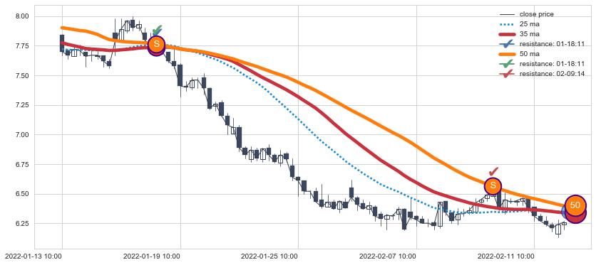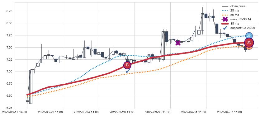 ⚂ 2022-07-14 13:00:00小时突然冒出一根大阴线,一下子下穿三条均线且收盘价收在各条均线之下