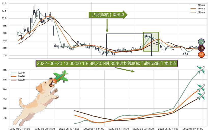 ⚀ 2022-06-13 09:00:00小时-2022-07-06 14:00:00小时显现 10小时-20小时-30小时均线 【战机起航】卖出点 看空信号,后市看跌,卖出