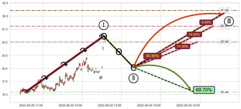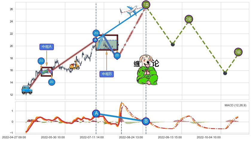从2022-03-23 10:00至2022-04-27 09:00,共包含115个小时,阶段股价下跌-52.75%,阶段股价变动位移路程比: 1 : 2