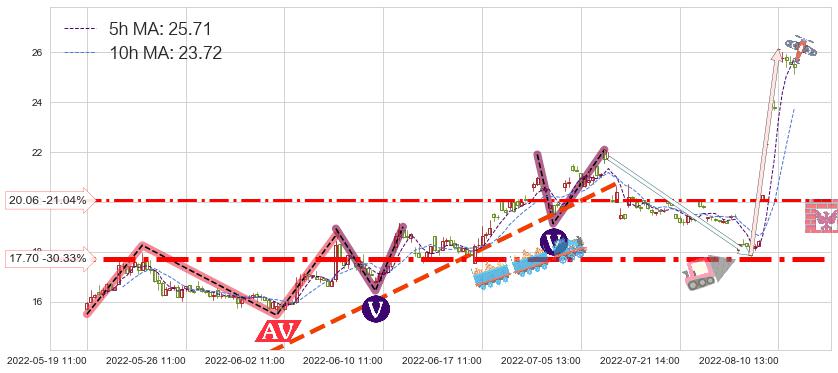 ♘ 支撑价格位17.70,可信任强度97.21%,距离最后交易2022-08-12 14:00形成的收盘价格25.40相差 -30.33%