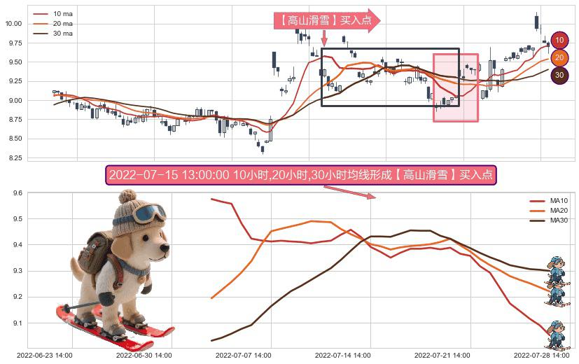 ⚀ 2022-07-04 14:00:00小时-2022-07-27 14:00:00小时显现 10小时-20小时-30小时均线 【高山滑雪】买入点 看多信号,后市看涨,买入