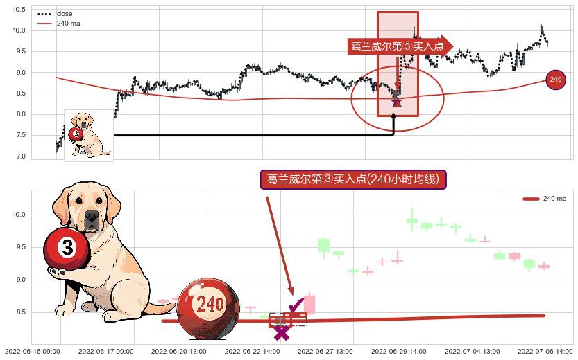 ⚀ 2022-06-23 13:00:00-小时显现 葛兰威尔均线 240小时均线 第③买入点 上升趋势的中继信号,后市看涨,买进信号