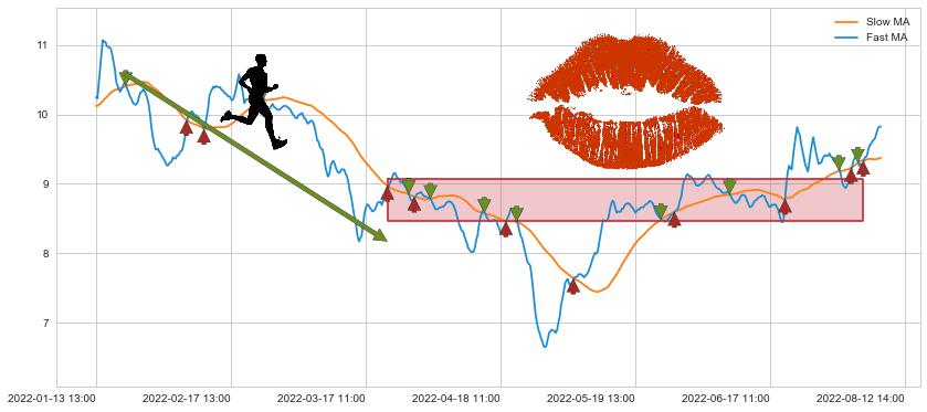 03-22 13:00至08-04 13:00 慢线与快线多次接触,存在上下穿越,有缠绕