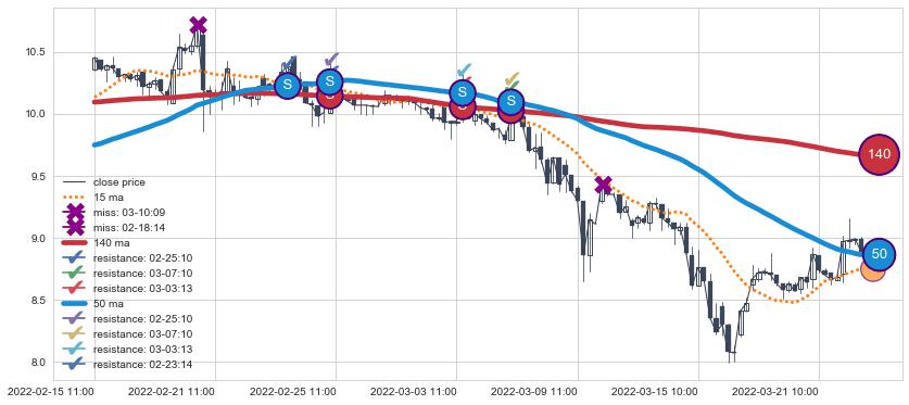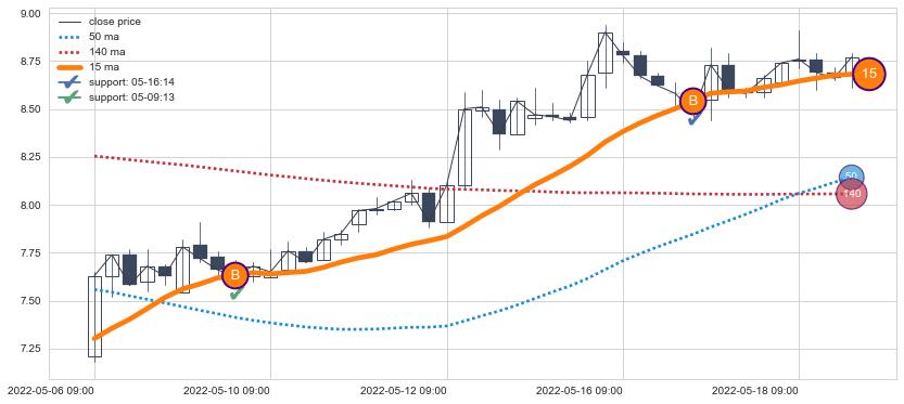 ⚂ 2022-06-22 14:00:00-小时均线向下破位,2022-06-23 13:00:00-小时重新上穿突破均线,均线支撑再次生效
