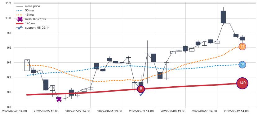 ⚂ 2022-08-04 14:00:00小时突然冒出一根大阳线,一下子顶穿三条均线且收盘价收在各条均线之上