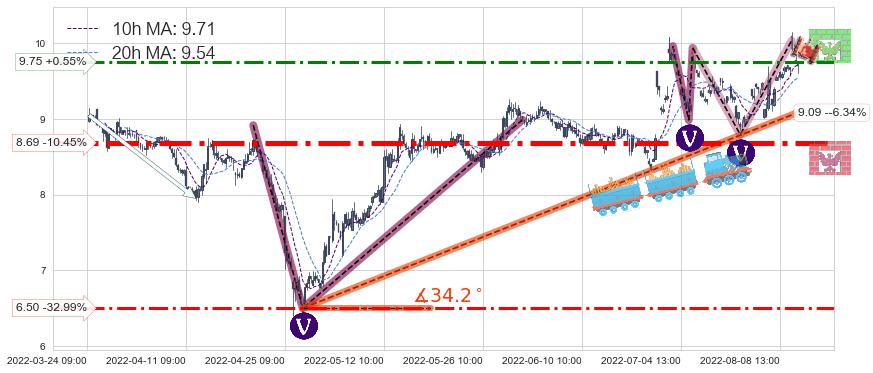 ♞ 10小时均线:9.71,20小时均线:9.54→ 快线>慢线