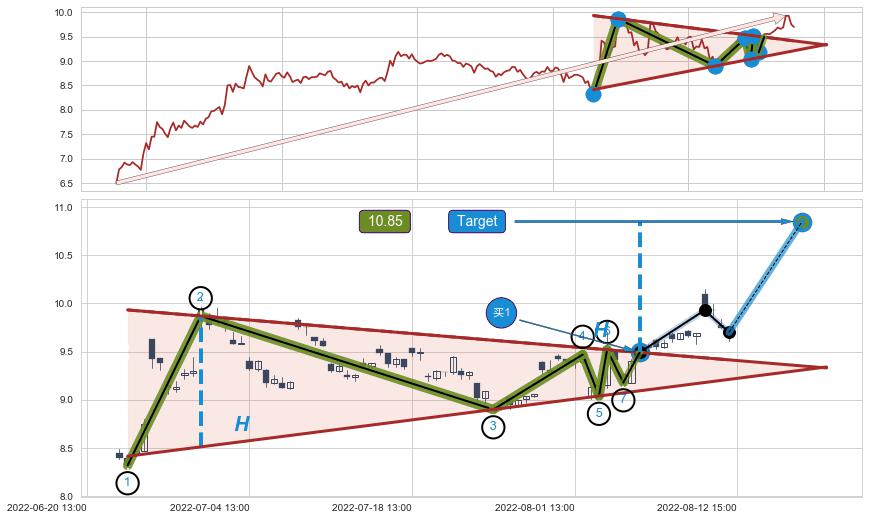 ➣ D点拟合预测价格10.32,距离最后交易收盘价格9.70相差 +6.37%